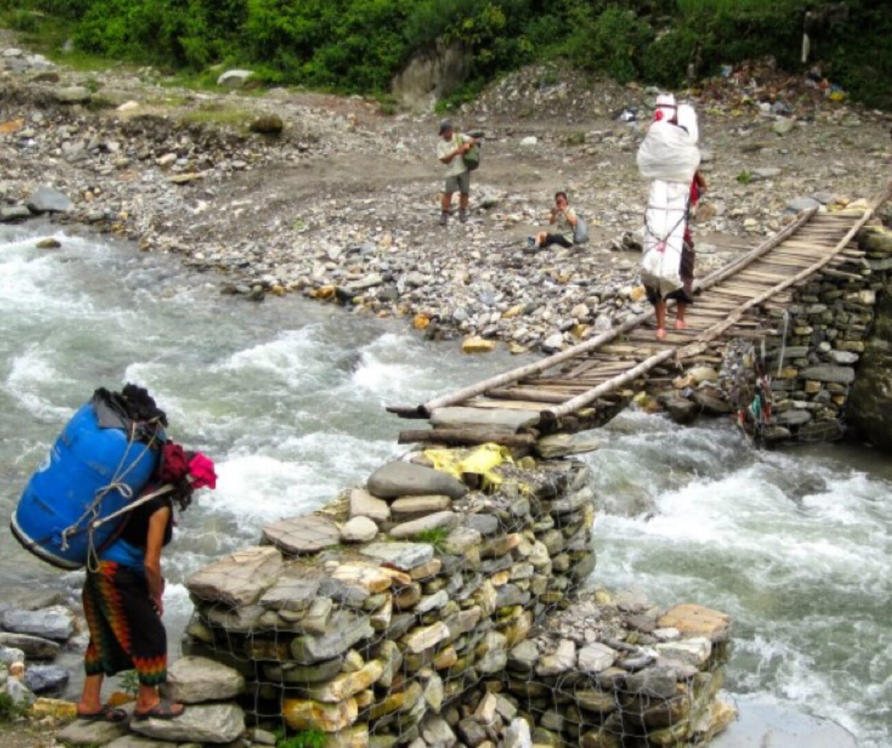 We have another ridge to conquer before crossing the Budi Gandaki River via a sturdy bridge. Following the bridge crossing, we climb a staircase that takes us up a hill to Doban. The trail then leads us to Yaru Khola, where we cross another bridge. Along this path, we encounter stone stairs, taking us up and down until we reach Tharo Bhanjyang. From here, we will have a panoramic view of the picturesque Guang villages nestled amidst lush forests high above. Keep an eye out for langur monkeys that often roam this area.
