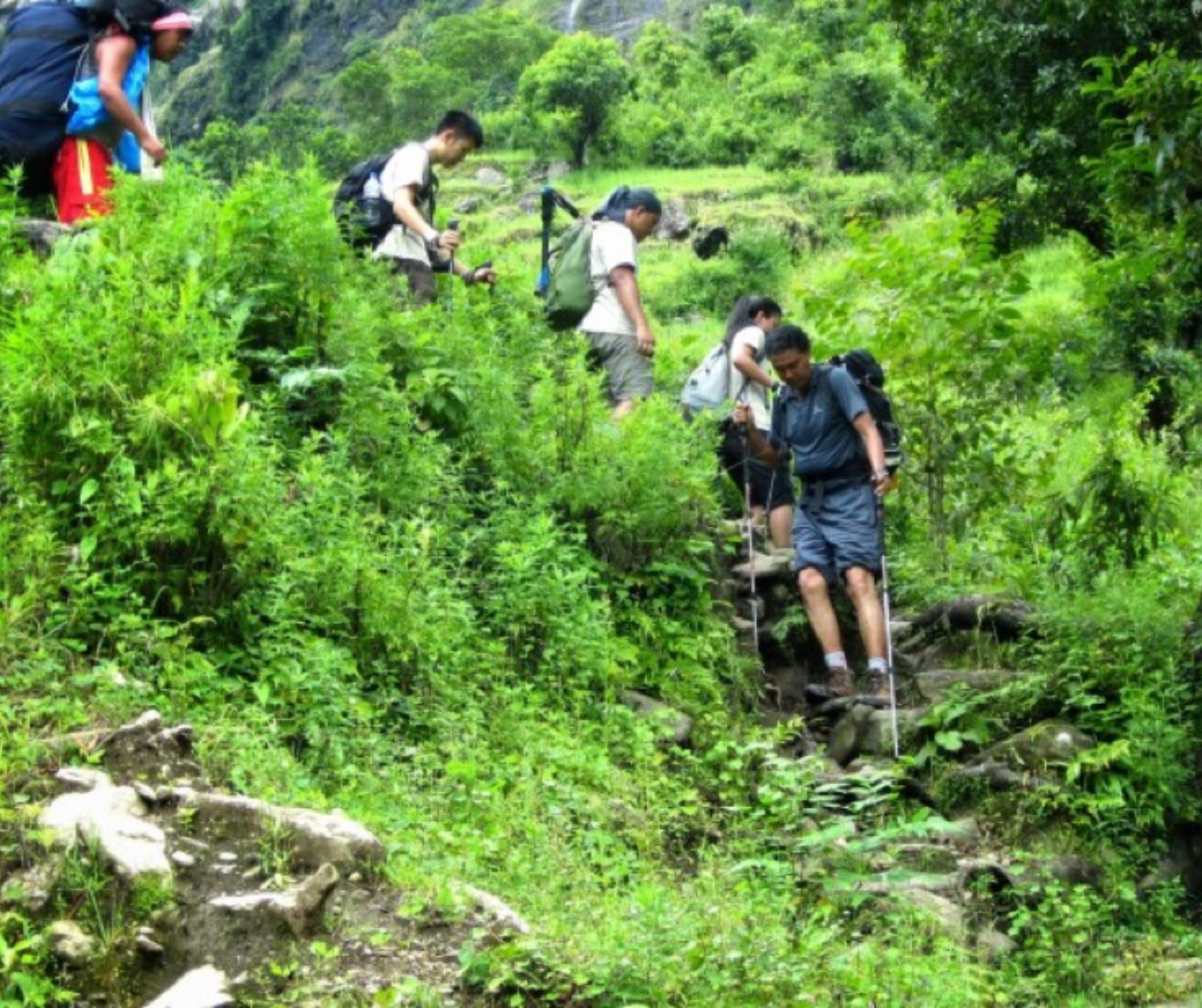 After crossing the Tharo Khola, we continue our journey with more ascents and descents. Eventually, we reach a small hot spring called Tatopani, a perfect spot to rejuvenate and relax in the soothing waters.